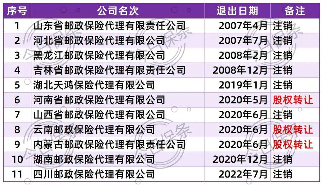而从2007年开始,邮政系专业保险代理就开始陆续退出市场。不完全统计,共计有11家公司退出或者转让股权。