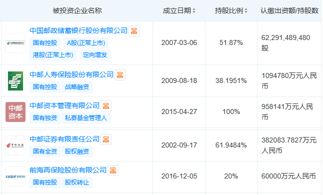 不过,中国邮政集团有限公司体系非常庞大,对外投资的银行、保险、金融机构非常多。包括邮储银行、中邮人寿、中邮资本、中邮证券和前海再保险等。天眼查显示,中国邮政储蓄银行股份有限公司占股51.87%。而银行则是保险兼业代理牌照的最大需求方。