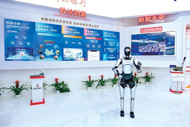 工行北京分行率先应用总行具身机器人,精彩亮相2025年服贸会,为到访观众带来便捷的金融服务体验。