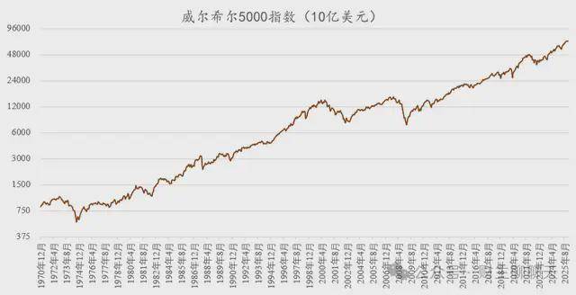 回溯至1970年,威尔希尔指数基本跟随美国标普500指数的增长而增长,1970年底,该指数为8000亿美元,1974年9月一度降至5500亿美元,此后基本一路增长,到2000年互联网泡沫期间,该指数一度突破12万亿美元,但随着互联网泡沫的破裂,该指数此后大约陷入12年的停顿期。不过,自2016年以来,该指数再次进入了快速增长期,尤其是新冠疫情爆发以来,该指数迅速上升至超过50万亿美元。