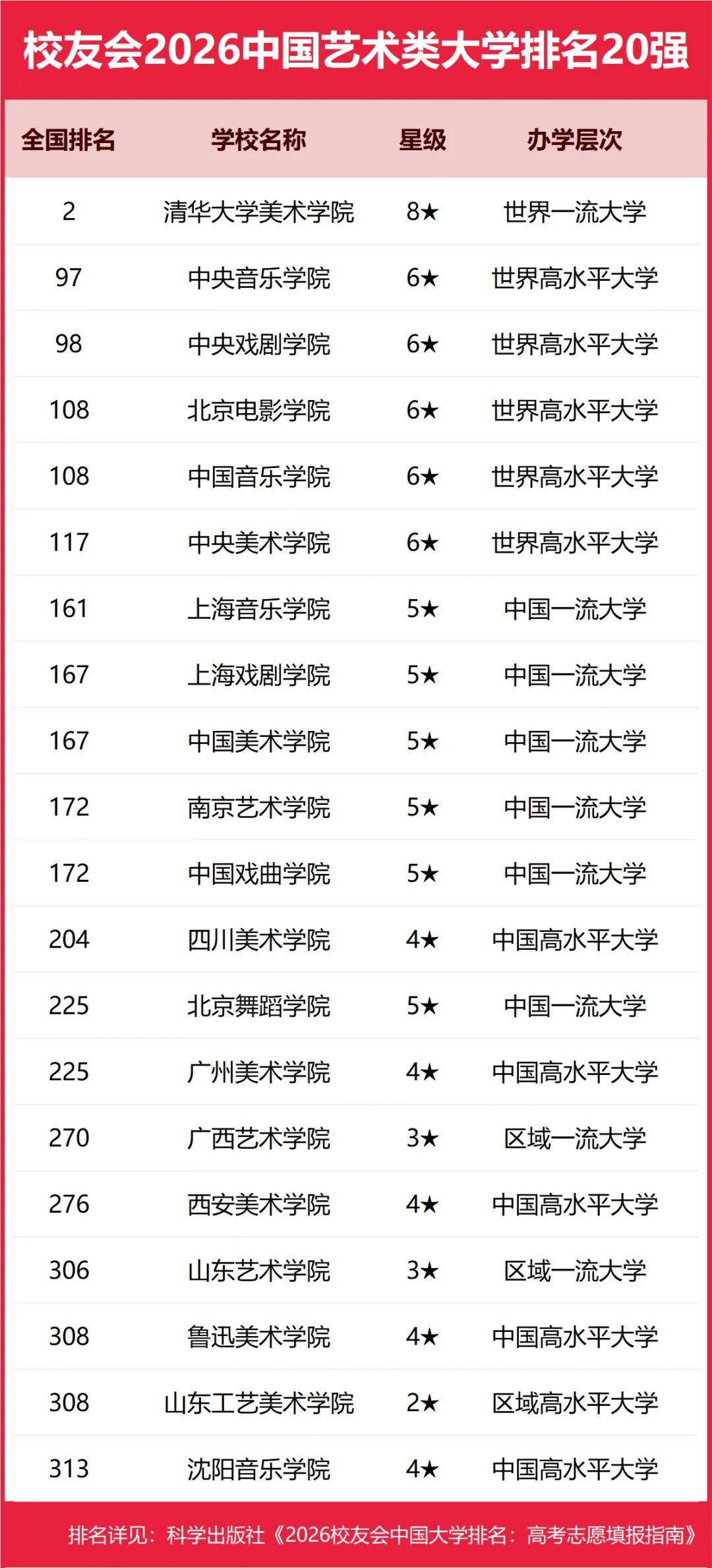 校友会2026中国艺术类大学排名,清华大学美术学院、辽宁传媒学院、景德镇艺术职业大学、广东亚视演艺职业学院第一