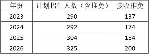 从历年(23-26年)招生目录来看,这个专业的总计划招生相当的可观,而且还呈扩招趋势(23年290人,24年292人,25年304人,26年325人),去掉已接收的推免,统考计划也至少有120+,而实际的录取人数还要更多,单从招生上来看,对统考生有利!