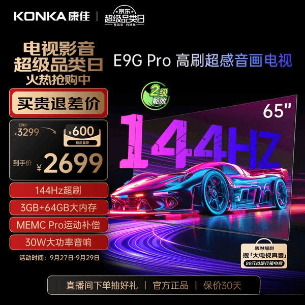 超高144Hz刷新率:这款电视配备144Hz疾速高刷技术,完美适应高速运动画面,确保观看时的流畅性,不论是激烈的体育赛事还是精彩的游戏场景,都能提供顺滑的视觉体验,让你绝不错过每一颗精彩瞬间。