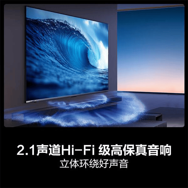这款电视还支持“德国莱茵”低蓝光认证,能有效减轻眼睛疲劳,让长时间观看更舒适。音响方面,2.1声道Hi-Fi系统和天籁引擎带来沉浸式的音效体验,整体表现相当靠谱,视听体验都能满足。