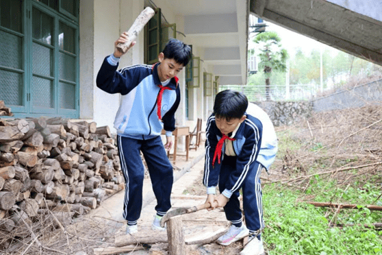 瞧,在和平中心小学的厨房里,队员们正分组协作:摘菜、砍柴、炒菜……他们要自己做出一顿晚餐!中国少年报的小记者肖以彤说:“看到同学们围过来抢着吃光我炒的菜,我真切尝到了亲自动手的幸福滋味,更深深体会到,分工合作能让普通的一餐变得格外有意义!”