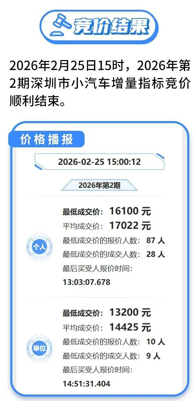 ● 2026年第2期粤B竞价结果出炉,个人最低成交价16100元;单位最低成交价13200元。
