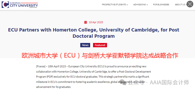 2025年11月8日,欧洲城市大学院校领导应邀出席2025年度国际注册会计师(ICPA)毕业典礼暨国际专业会计师公会(IAAP)联合认证五周年庆典,并在现场正式发布《关于认可IAAP国际注册会计师资格的衔接协议》,为ICPA持证人量身打造学术深造快速通道。