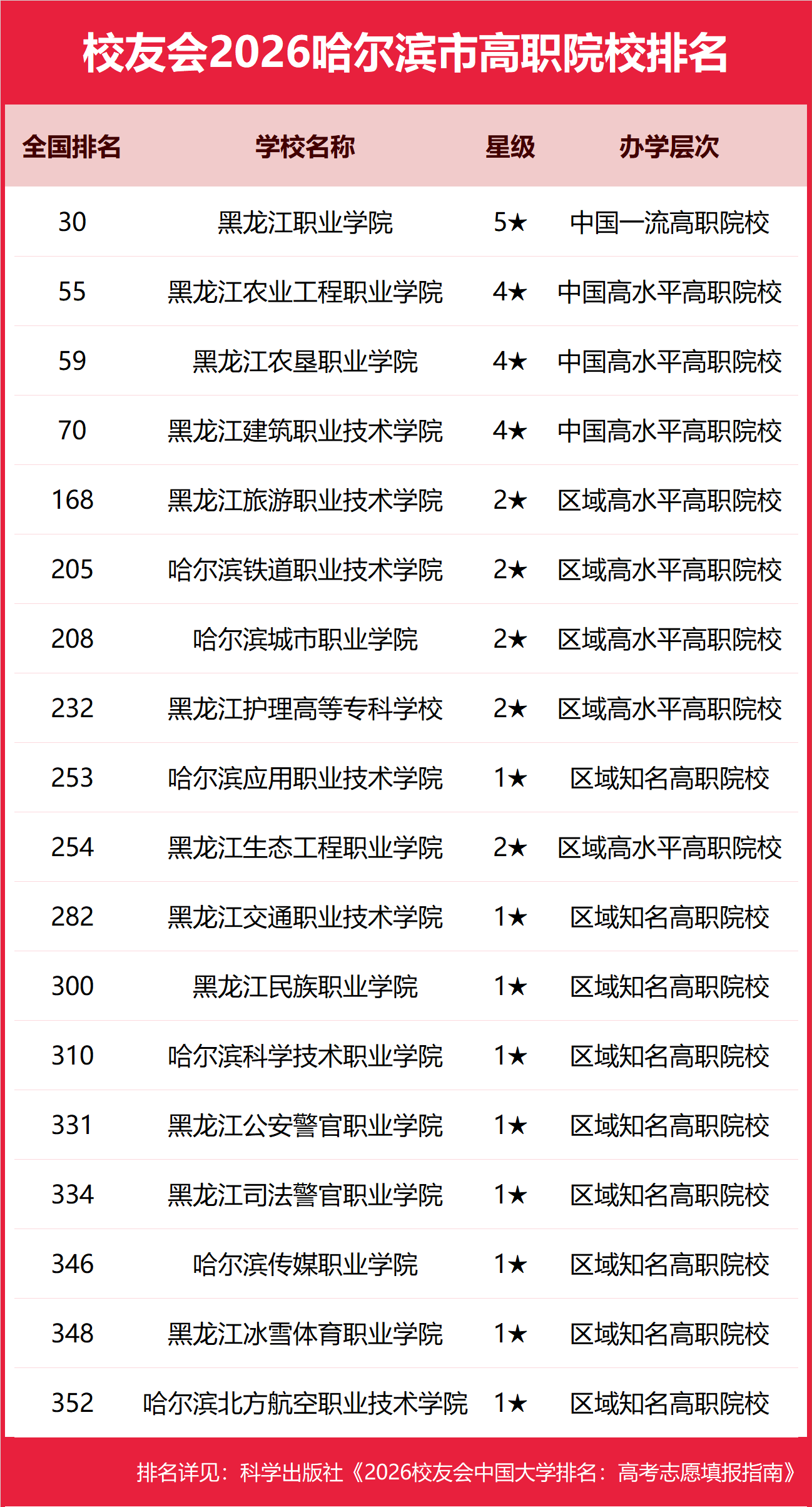 校友会2026哈尔滨市高职院校排名,黑龙江职业学院第一,黑龙江农业工程职业学院、黑龙江农垦职业学院前三